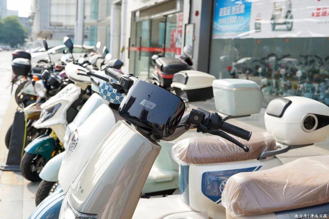 清城区桥北路,某品牌电动车专卖店摆放的热销新款电动车。清远日报记者 刘淑芳 摄 (资料图)